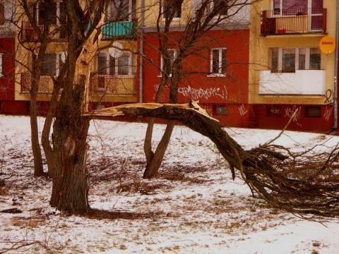 | 32312. | Na iławskim Osiedlu Ostródzkim przy ul Zielonej (w okolicy bagienka) zagraża wiszący pień starego drzewa.
